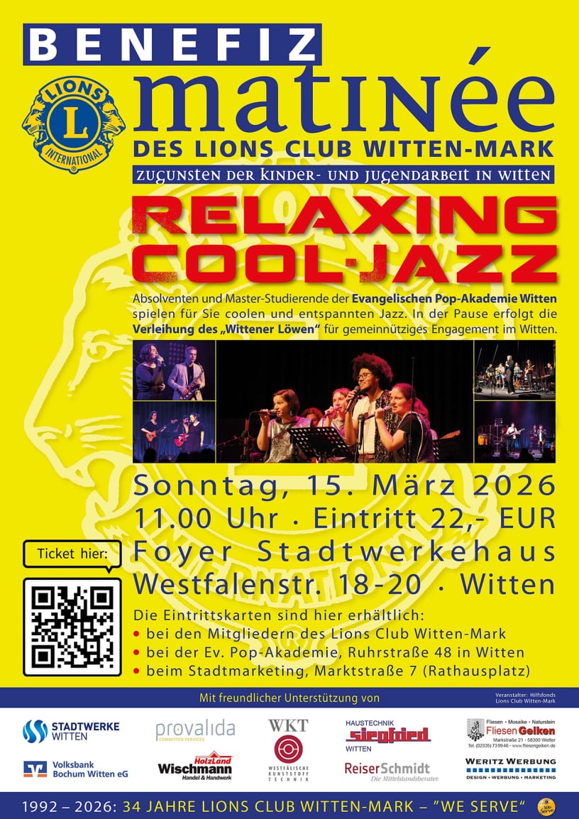 In der Pause wird der Preis des "Wittener Löwen" verliehen, mit dem wir das Engagement für die Kinder- und Jugendarbeit in Witten auszeichnen. Folgen Sie uns auf neuen musikalischen Wegen und seien Sie mit uns gespannt auf den neuen Preisträger.